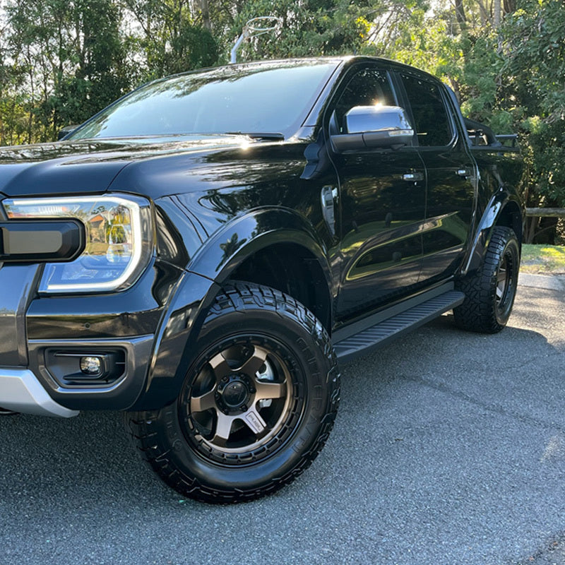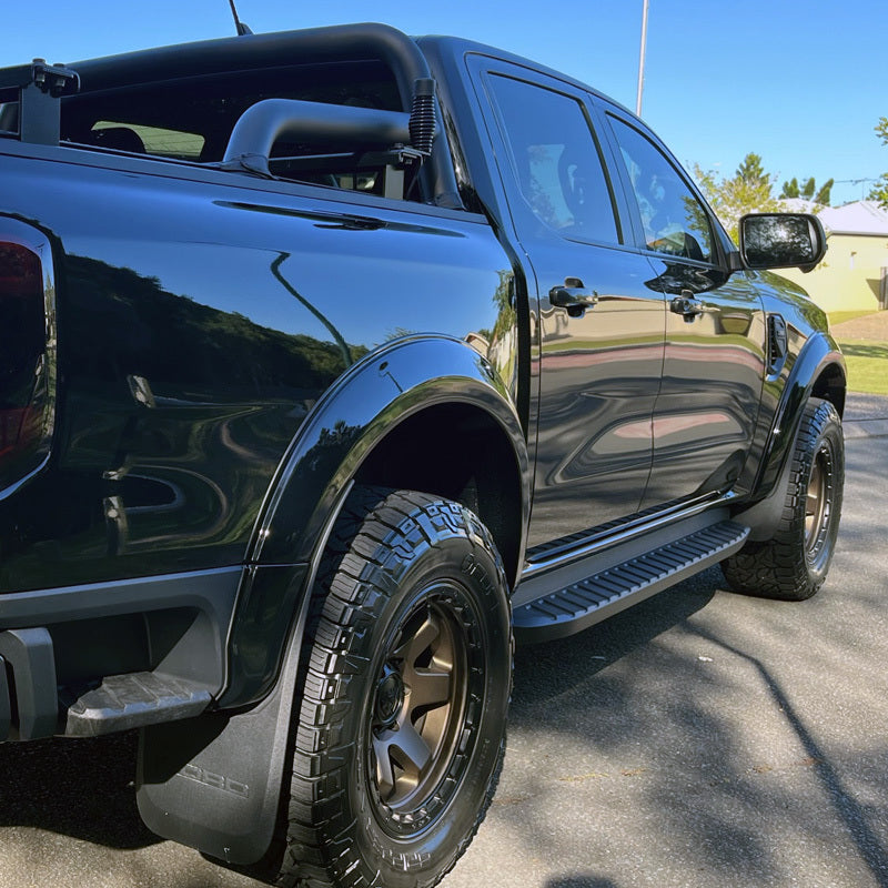 Ford Ranger Next Gen Fender Flares 130mm high X 35mm wide. Full 8 piece Dual cab XL, XLS, XLT, Sport, Widtrack to suit Bumper Bar or Bull Bar. Factory Colours